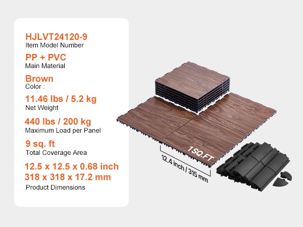 - Suurin kuormitus per laatta: 440 lbs / 200 kg
