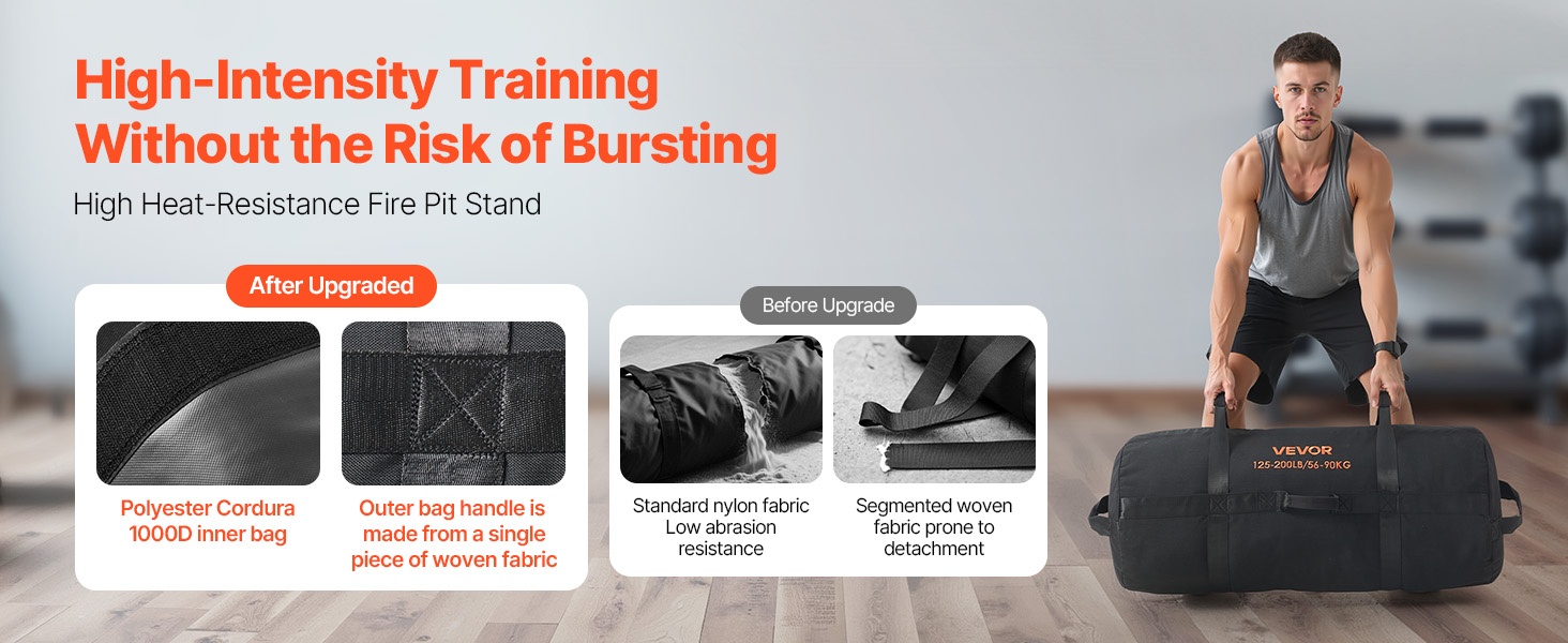 Harjoitteluun tarkoitettu hiekkasäkki sisältää Cordura 1000D -sisäpussin PVC-pinnoitteella ja ulkopussin, jossa on täyspituinen kudottu kahva. Rakenne kestää lyönnit, pudotukset ja vetämisen, säilyttää muotonsa ja vähentää murtumisriskiä, mikä lisää harjoittelun turvallisuutta.