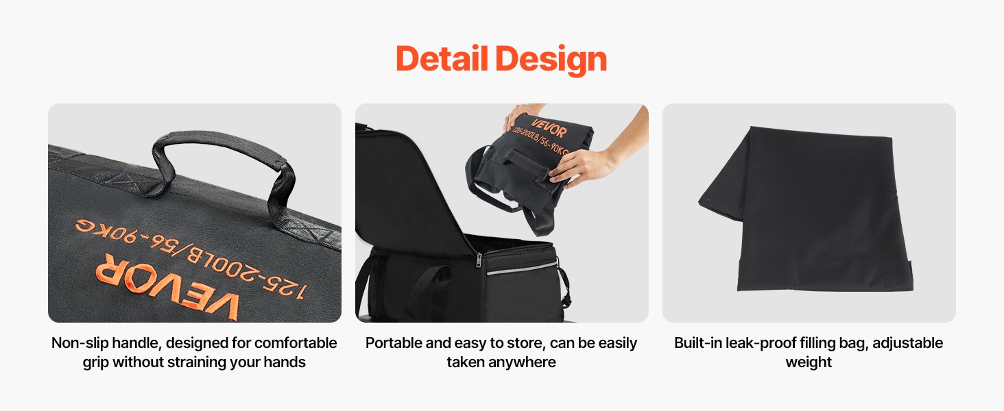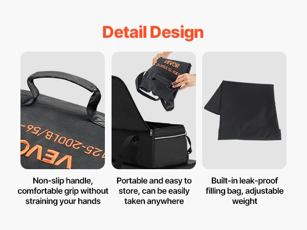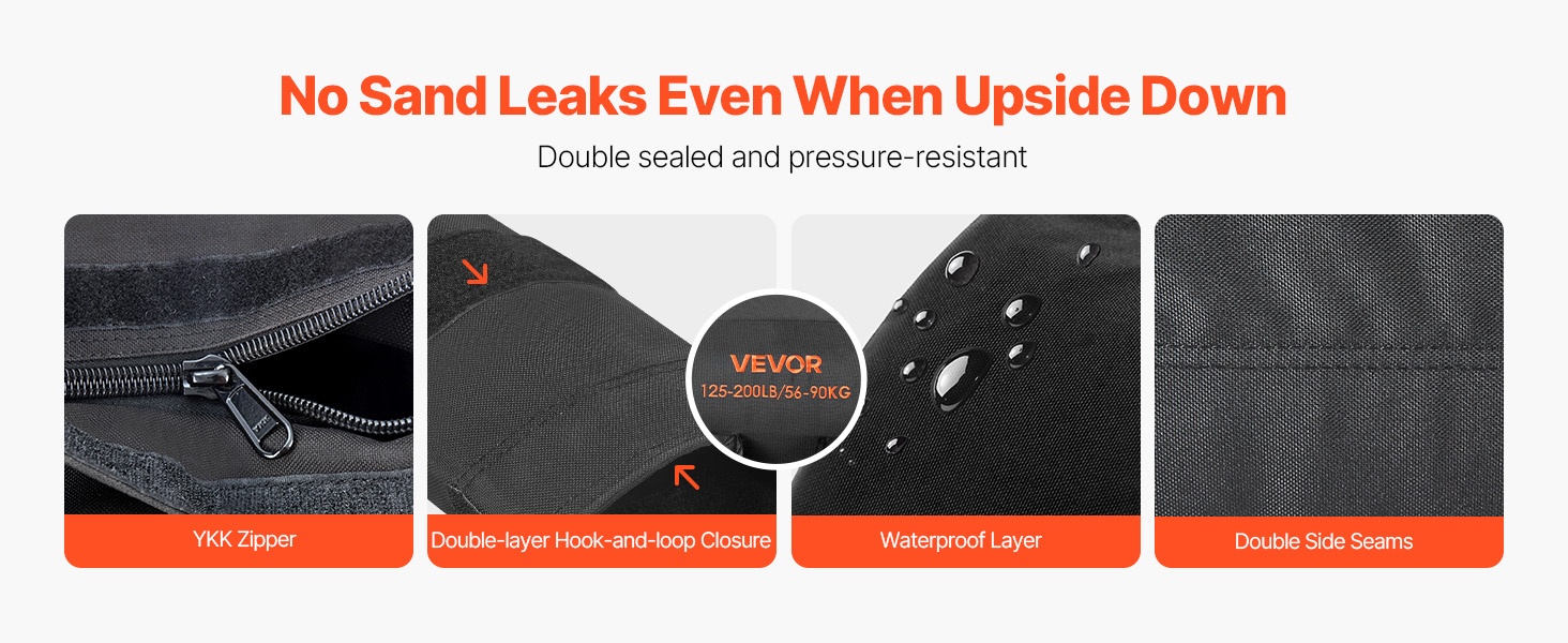 Säädettävä hiekkasäkki on varustettu YKK-vetoketjuilla ja muilla painetta kestävillä sulkumateriaaleilla. Ne estävät hiekan vuotamisen myös kovassa pyörityksessä ja heittelyssä, ja suojaavat säkkiä pitkäaikaisessa käytössä.