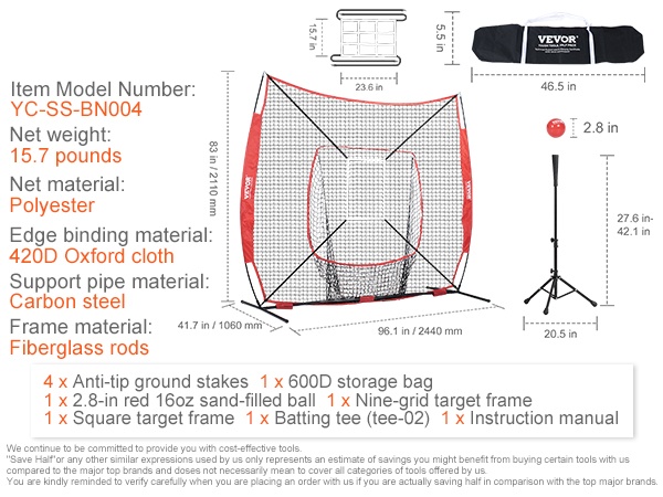 Tämä 213.4 x 213.4 cm harjoitusverkko sopii lyöntien, koppien ja syöttöjen harjoitteluun sekä aloittelijoille että kokeneemmille pelaajille. Vahva runko ja iskua vaimentava verkko auttavat parantamaan osumatarkkuutta ja pallonhallintaa niin kentällä, pihalla kuin harjoitushallissa.