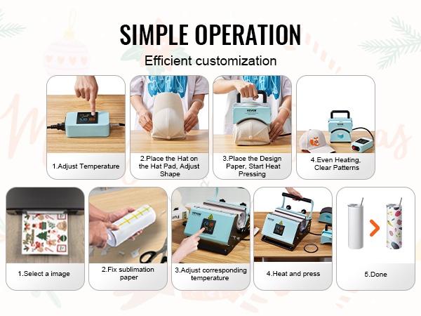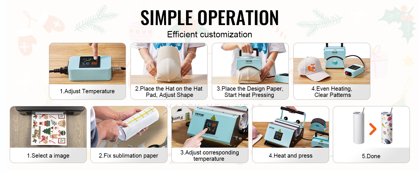 Kompakti ja helppokäyttöinen hattupuristin, jolla teet personoidut lippikset ja hatut vaivattomasti. Kaareva, keraamisella pinnoitteella varustettu lämmityslevy mukailee hatun muotoa ja varmistaa tasaisen lämmönjaon ja selkeän kuvion siirtymisen.