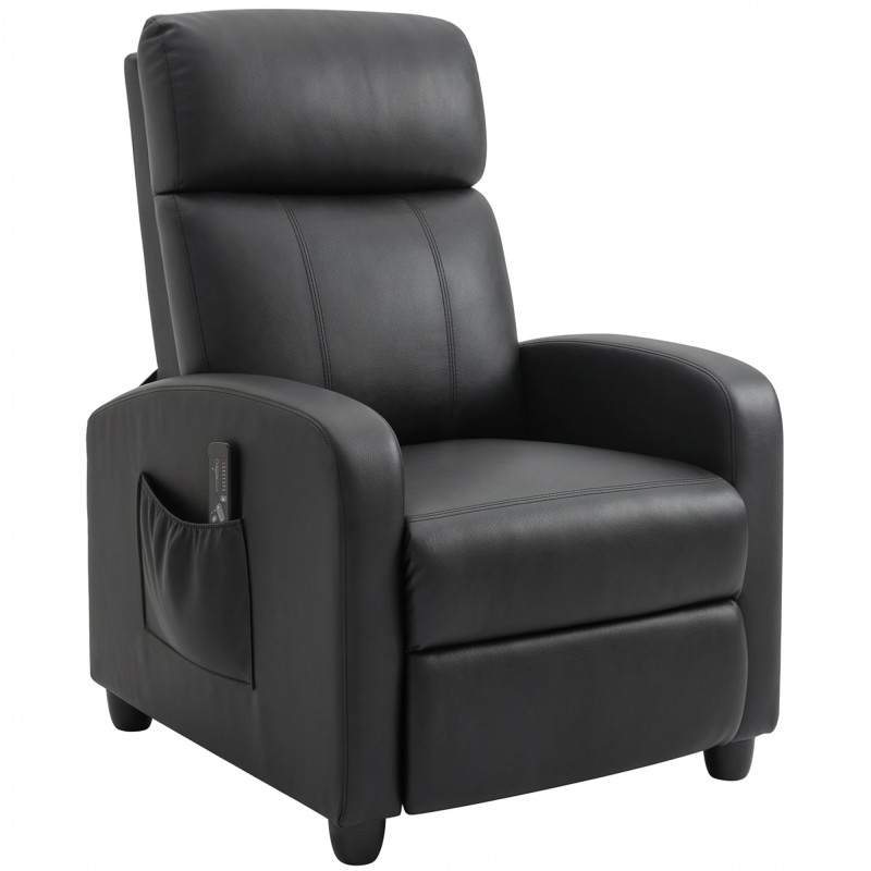 Rentoudu pitkän päivän jälkeen mukavasti tässä pehmeästi pehmustetussa hierontatuolissa. Selkänojaan integroidut värinäpisteet auttavat lievittämään jännitystä, ja selkänojan sekä jalkatuen ansiosta voit istua rennosti tai nojata lähes makuuasentoon. Helppokäyttöinen kaukosäädin, keinonahkaverhoilu ja kätevä sivutasku tekevät tuolista käytännöllisen valinnan olohuoneeseen, makuuhuoneeseen tai kotiteatteriin.