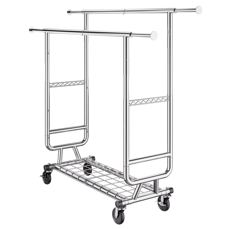 Hiiliteräs vaateräkki kahdella vaatetangolla säädettävällä korkeudella jatkettavalla pituudella alahyllyllä 272 kg