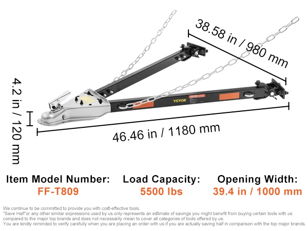 - Kantavuus jopa 5500 lbs / 2495 kg vakaa ja turvallinen hinaukseen.