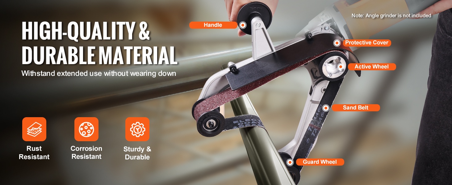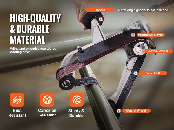 Putkien ja putkimaisten kappaleiden hiomasovitin on valmistettu korkealaatuisesta alumiiniseoksesta, joka kestää ruostetta, korroosiota ja naarmuuntumista. Integroitu alumiinirunko auttaa pitämään hiomanauhan paikoillaan myös painetta käytettäessä.
