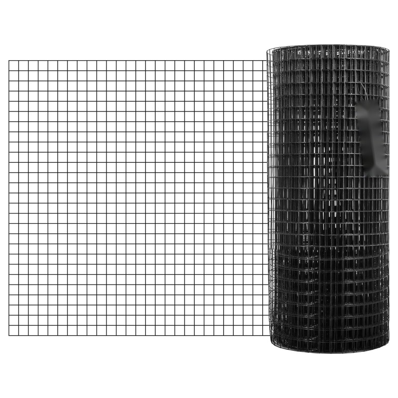 Teräksinen, sinkitty ja mustalla vinyylillä pinnoitettu hitsattu verkko soveltuu hyvin puutarha-aitaan, kasvien suojaukseen sekä lemmikkien ja pieneläinten aitauksiin. Tiheä 1" x 1" silmäkoko suojaa tehokkaasti, ja 24" x 50' / 61 x 1524 cm -rulla riittää useisiin käyttökohteisiin. Mukana tulee pihdit verkon leikkaamiseen ja kangaskäsineet työskentelyn helpottamiseksi.