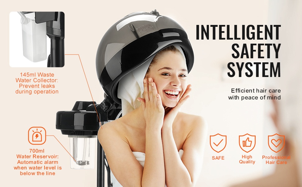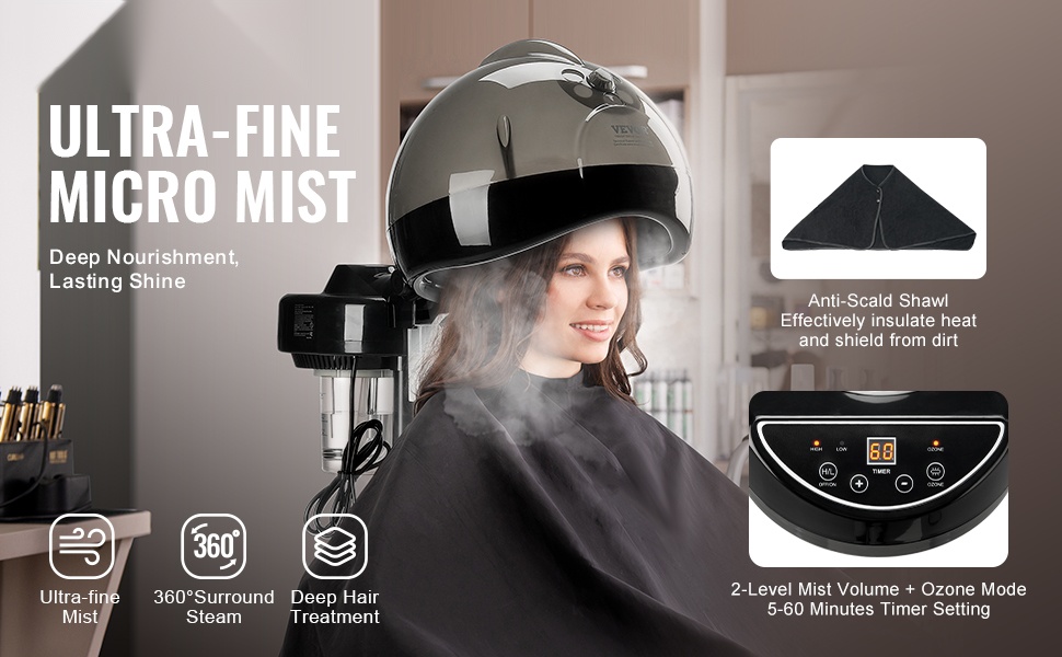 Tämä ammattitasoinen hiushöyrystin kosteuttaa hiukset perusteellisesti ja auttaa hoitoaineita vaikuttamaan syvemmin. 11.81-tuumainen kupu, 2 höyrytasoa, ionitila ja 0–60 minuutin ajastin tekevät laitteesta monipuolisen apuvälineen sekä kotiin että salonkiin.
