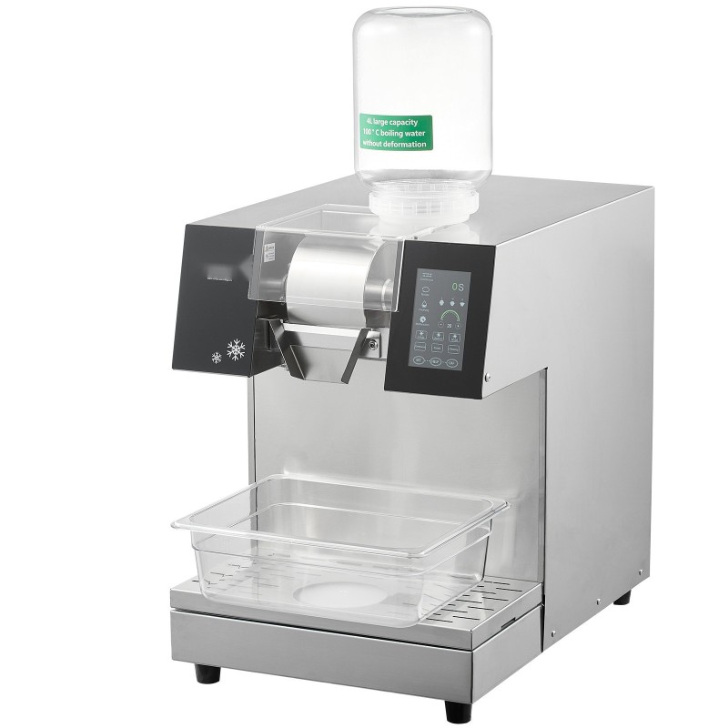 Tämä nestemäisellä jäähdytyksellä varustettu hiutalejääkone on varustettu tehokkaalla 700W kompressorilla, joka saavuttaa nopean jäähdytyksen 40 sekunnissa. Kahden 4 L korin ansiosta laite pystyy tuottamaan jopa 529.1 lbs / 240 kg jäätä 24 tunnissa, mikä sopii erilaisten pirtelöjäätelöiden ja jäähilejuomien valmistamiseen.