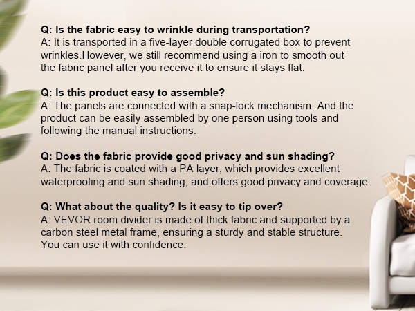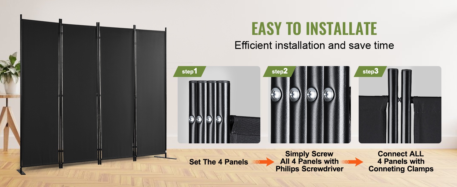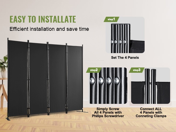 Vahvistetut tukijalat ja paksumpi puurunko lisäävät huoneenjakajan vakautta. Paneelit on yhdistetty kolmeen kaksoissuuntaiseen saranasarjaan, mikä parantaa sekä turvallisuutta että käyttöikää.