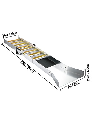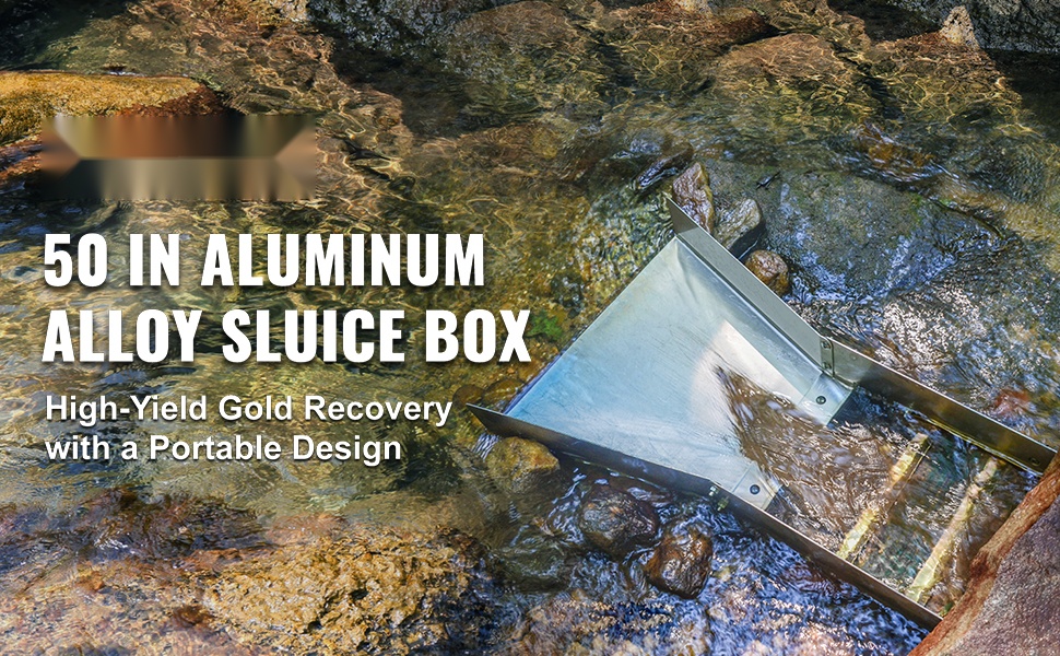 Taittuva alumiiniseoksesta valmistettu 50-tuumainen huuhtelukouru kullanhuuhdontaan. Kevyt rakenne, kompakti koko ja kantokahva helpottavat kuljettamista joen tai puron varteen. Irrotettavat kohoumat, metalliverkko ja mineraalimatto auttavat talteenottamaan myös pienet kultahiput. Sopii sekä aloittelijoille että kokeneemmille kullanetsijöille.