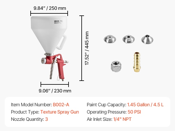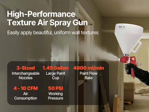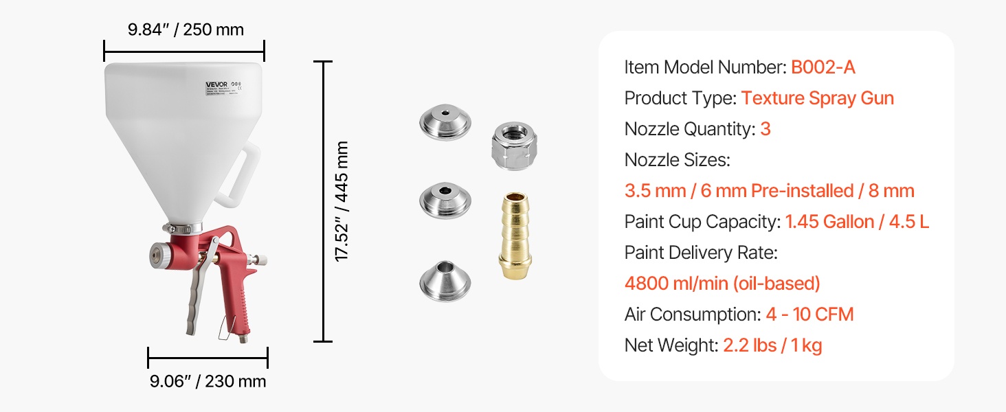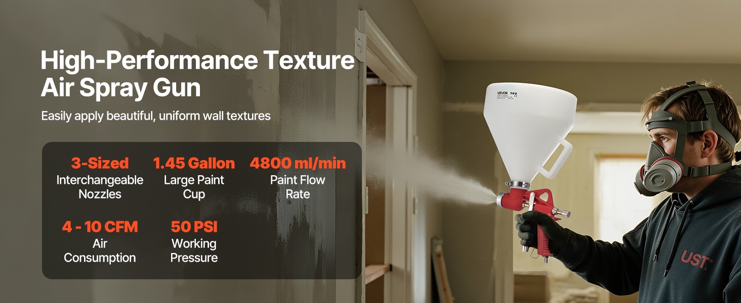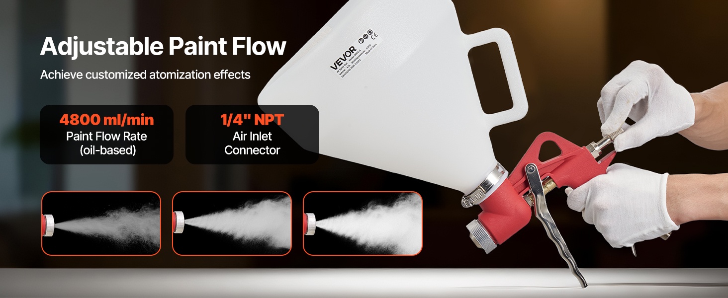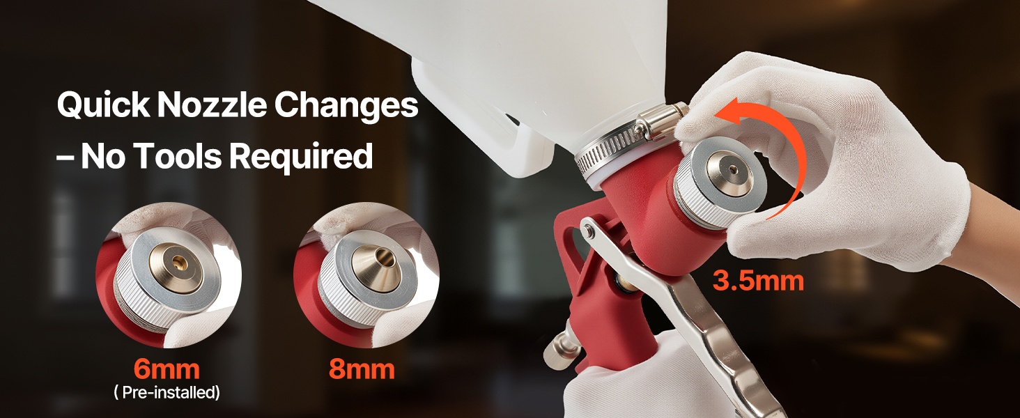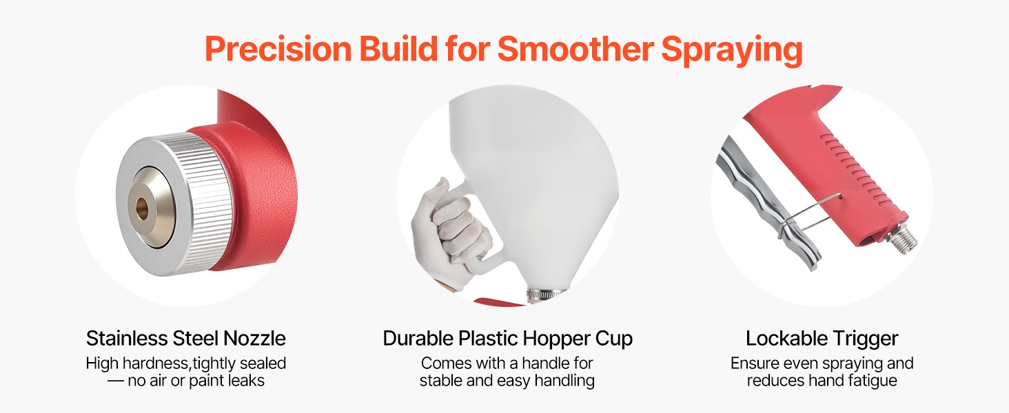 Ruostumattomasta teräksestä valmistetut suuttimet ja messinkinen sumutuskorkki vähentävät ilman ja maalin vuotoja. Herkkä liipaisin ja ergonominen kahva pienentävät käden rasitusta ja helpottavat tarkan ruiskutuksen hallintaa.