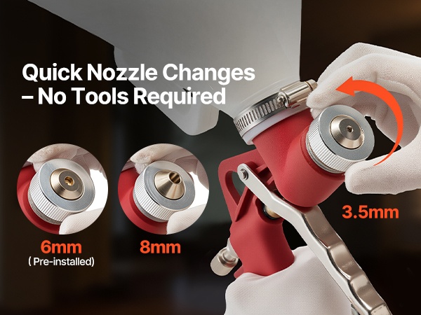 - 3 vaihdettavaa suutinta: 1.3 mm, 1.4 mm ja 1.7 mm eri maalityypeille