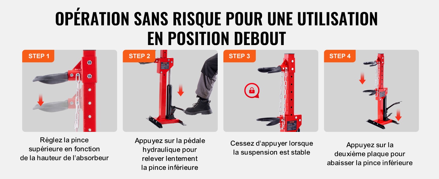 Tämä hydraulinen jousipuristin helpottaa ja nopeuttaa jousituksen huoltotöitä. Laite on suunniteltu erityisesti iskunvaimentimien ja jousijalkojen kierrejousien turvalliseen puristamiseen ja irrottamiseen.