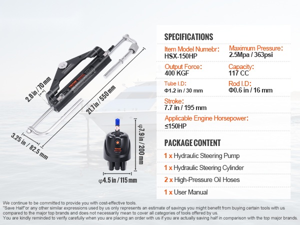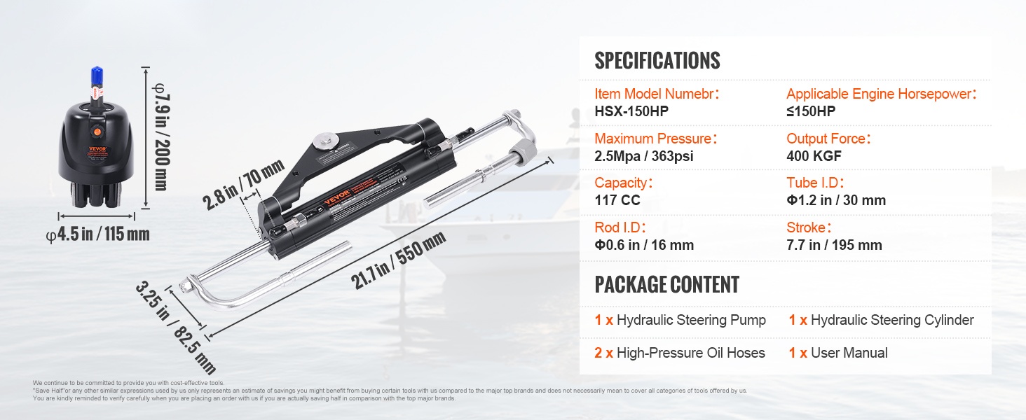Tämä hydraulinen ohjausjärjestelmä soveltuu perämoottoreille, joiden teho on enintään 150HP. Peräsinakselin alumiiniseoksesta valmistettu kuori kestää meriolosuhteita, ja kaksisuuntaisella lukitusventtiilillä varustettu sylinteri parantaa hallittavuutta ja ajomukavuutta.