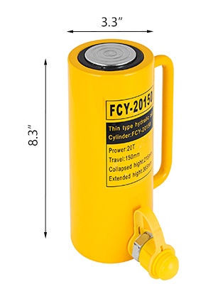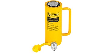 Ontto yksitoiminen hydraulinen sylinteritunkki raskaaseen nostamiseen ja puristamiseen. Tukeva metallirakenne, korroosiosuojattu maalipinta ja kompakti, matala rakenne tekevät sylinteristä sopivan myös ahtaisiin kohteisiin, joissa tavalliset sylinterit eivät mahdu. Sopii esimerkiksi teollisuuden, konepajojen, hitsaamoiden sekä korirakennus- ja runkokorjaamotöihin.