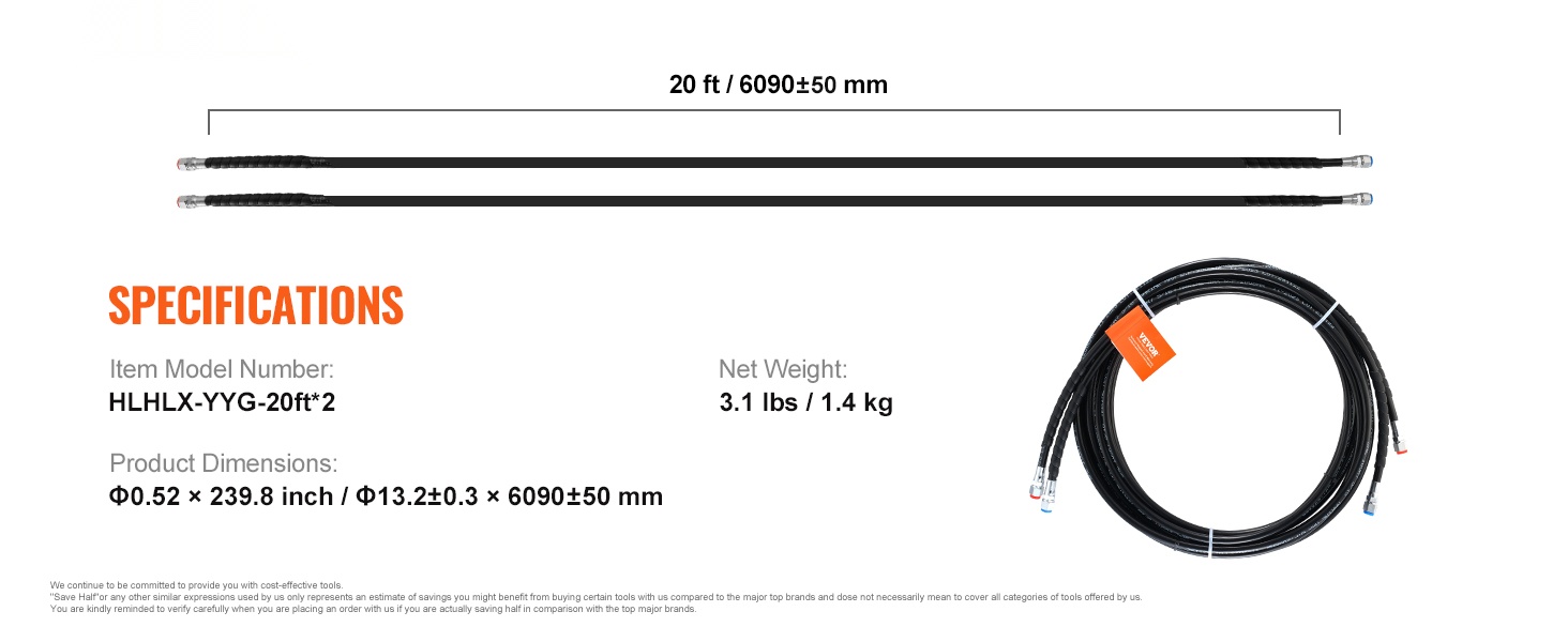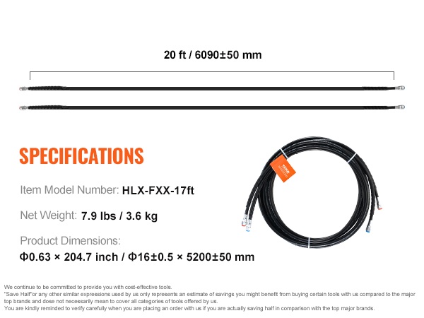 - Letkun pituus: 20 ft / 6090±50 mm