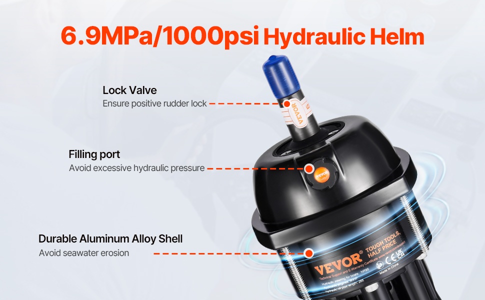 Hydraulinen ohjauspumppu on suunniteltu varmaan ja tasalaatuiseen toimintaan. Siinä on lukitusventtiili, joka varmistaa luotettavan peräsimen lukituksen, täyttöaukko liiallisen hydraulipaineen välttämiseksi sekä kestävä alumiiniseosrunko, joka kestää meriveden aiheuttamaa korroosiota.