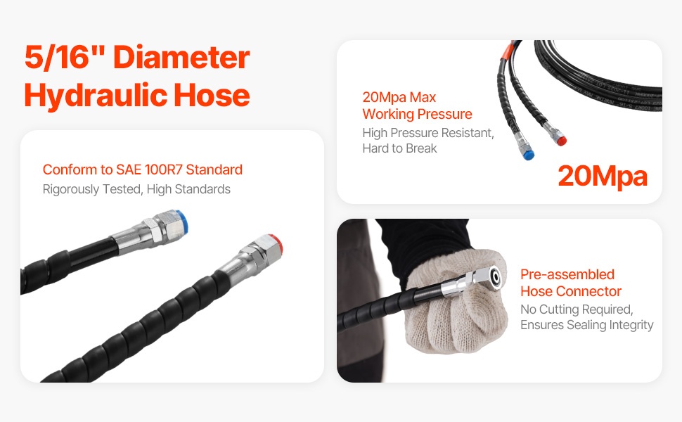 - 2 kpl 26FT hydrauliletkua, suurin käyttöpainetaso 20MPa (SAE 100R7 -standardin mukainen)