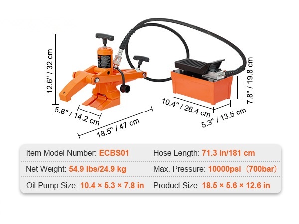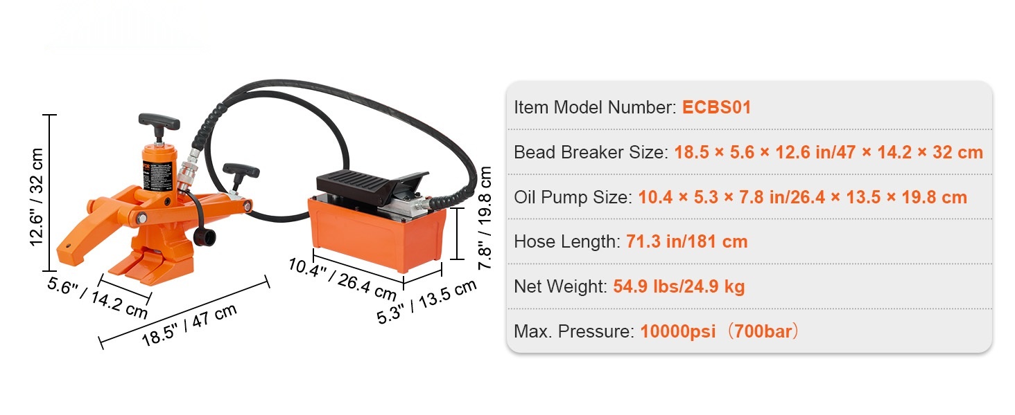 Tämä hydraulinen bead breaker -rengastyökalu nopeaan renkaan ja vanteen erottamiseen soveltuu monenlaisiin ajoneuvoihin, kuten traktoreihin, kuorma-autoihin, busseihin, ruohonleikkureihin, mönkijöihin ja golfkärryihin. Kestävä rakenne on suunniteltu vaativaan käyttöön ja pitkäikäiseen luotettavuuteen.