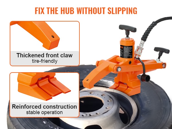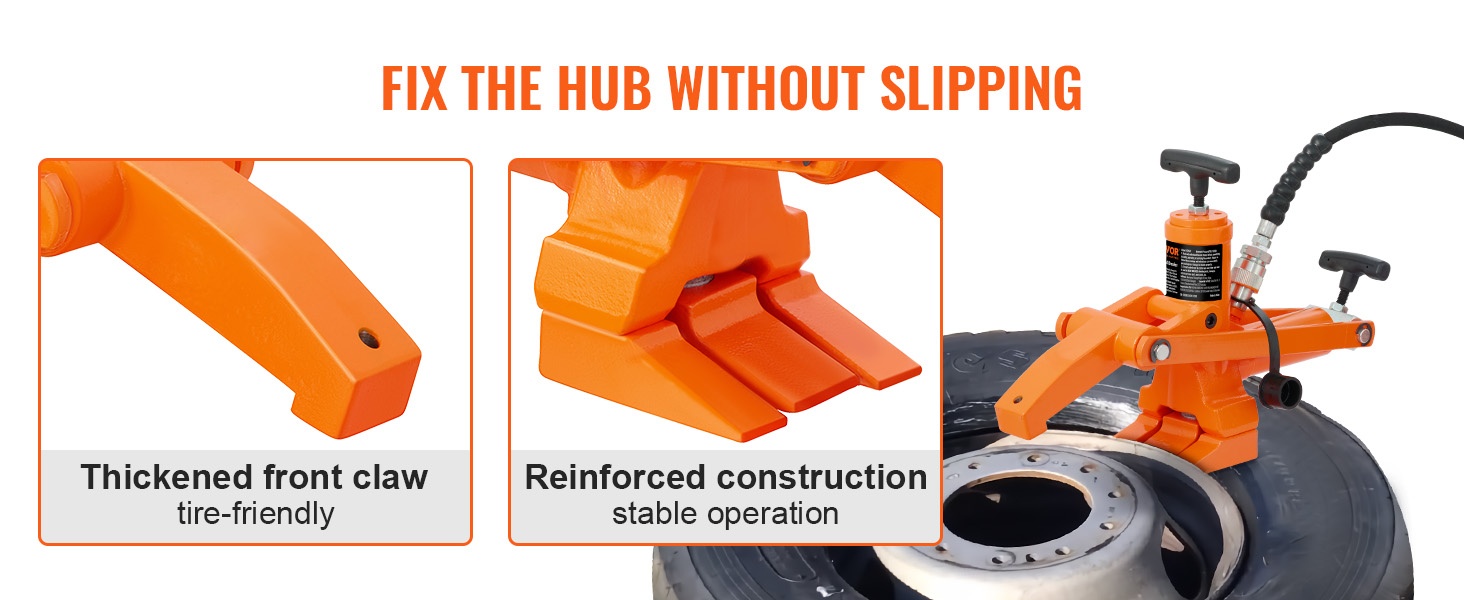 Paksunnettu, koukkumallinen etukynsi ja tukeva pohjalevy pitävät eri kokoiset vanteet tiukasti otteessa ilman kulumaa tai vaurioita. Jalan muotoilu helpottaa sen työntämistä renkaan ja navan väliin, jolloin ote pysyy pitävänä eikä luistamista synny.