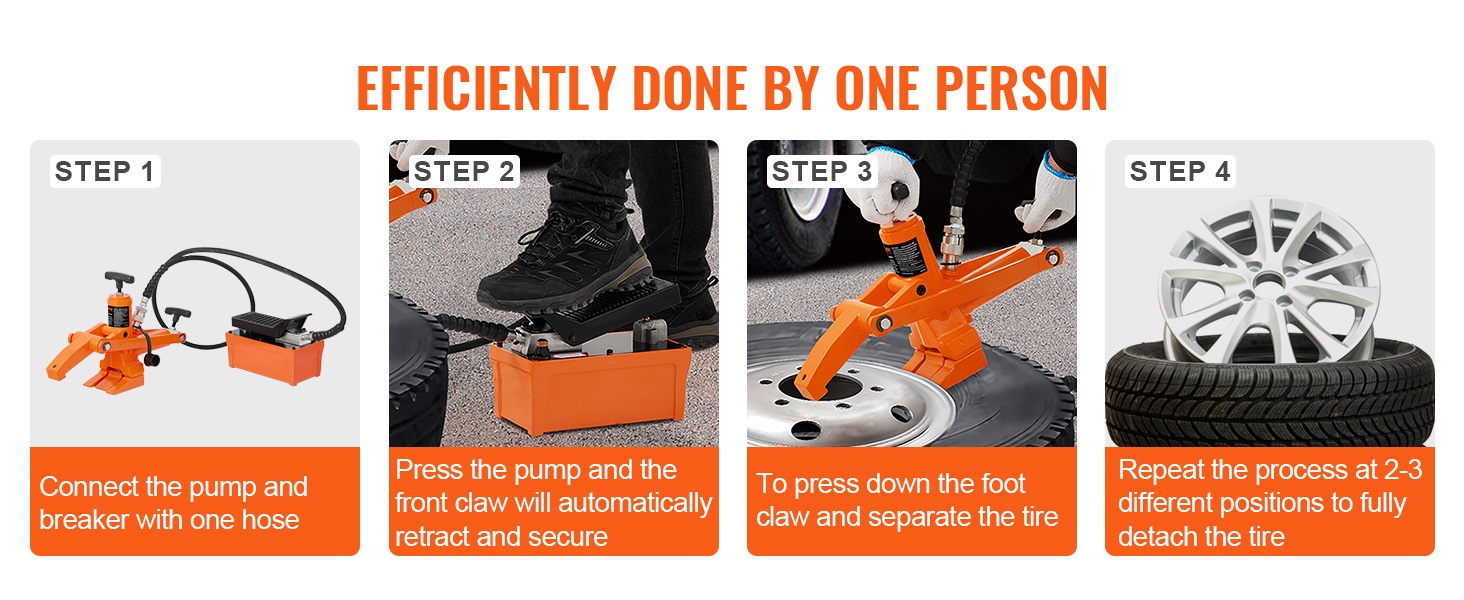 Hydraulinen bead breaker -työkalu nopeuttaa ja helpottaa renkaiden irrotusta vanteilta. Se soveltuu useisiin ajoneuvoihin, kuten traktoreihin, kuorma-autoihin, busseihin, ruohonleikkureihin, mönkijöihin ja golfkärryihin. Työkalu vähentää fyysistä rasitusta ja tekee rengastöistä tasalaatuisempia.