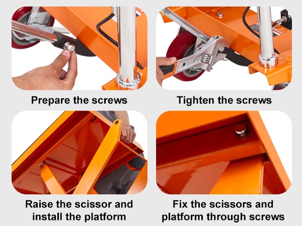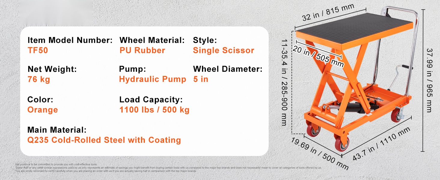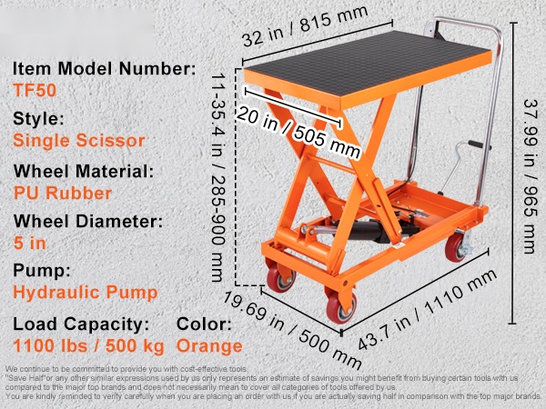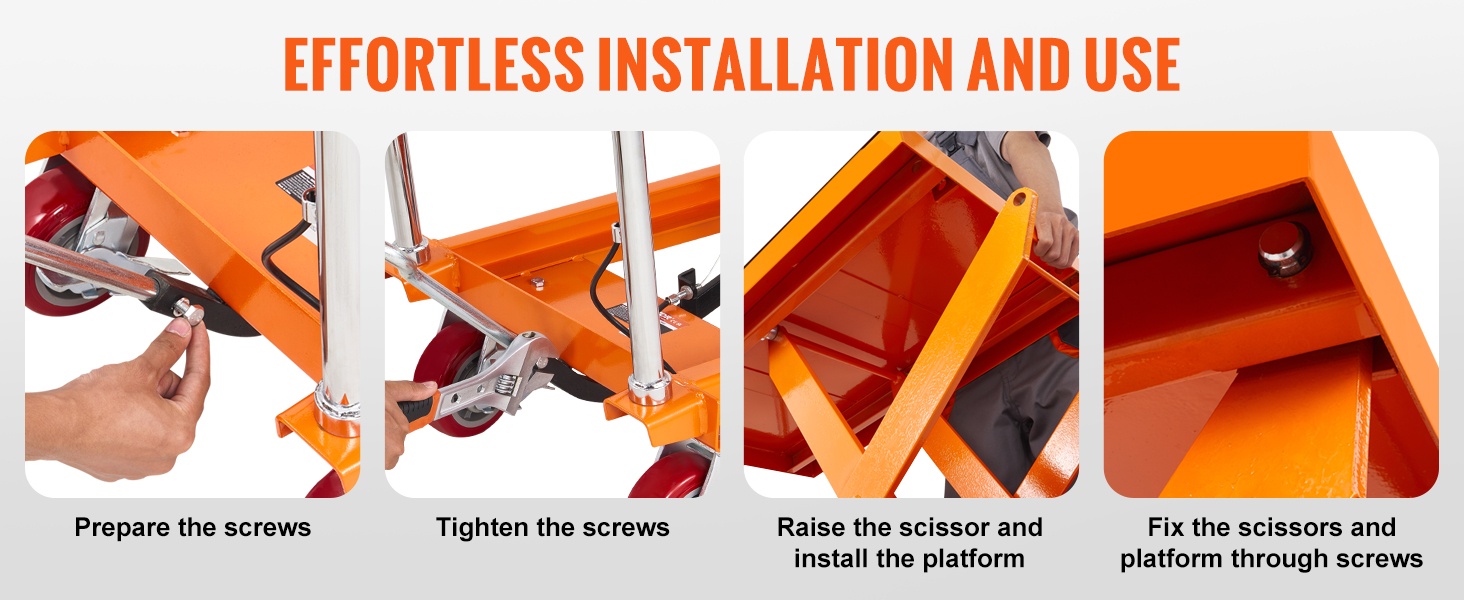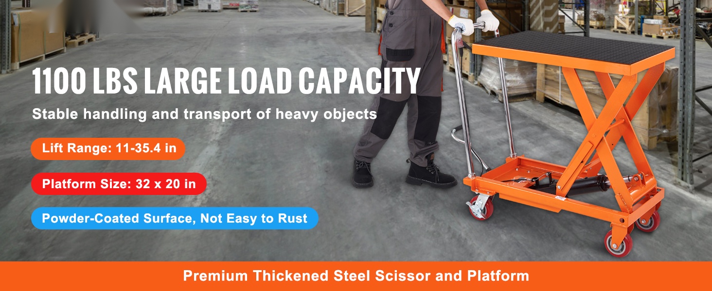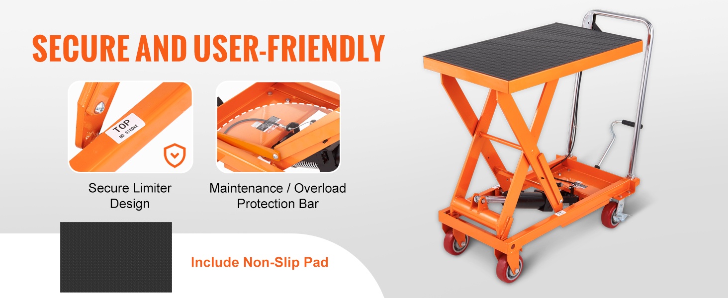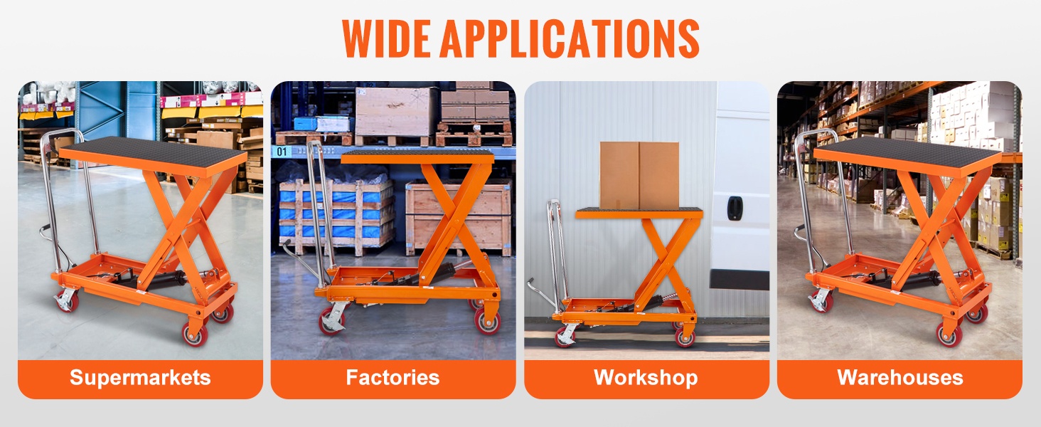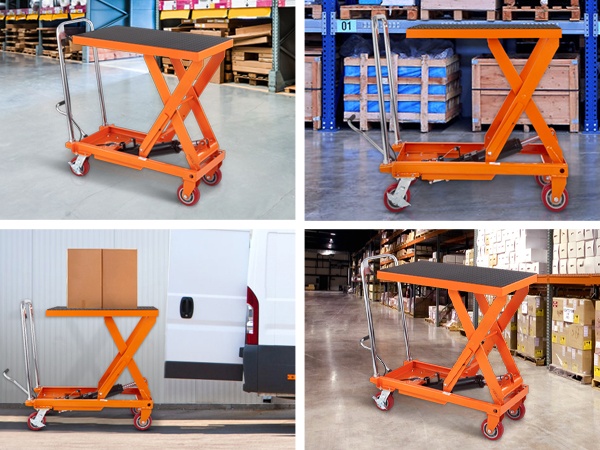 Hydraulinen saksinostopöytä mahdollistaa jopa 770 lbs / 350 kg kuorman nostamisen. Paksusta, jauhemaalatusta teräksestä valmistettu rakenne on ruosteenkestävä ja kestävä. Kärry helpottaa turvallista ja tehokasta materiaalinkäsittelyä sekä vähentää käsin nostamisen tarvetta.