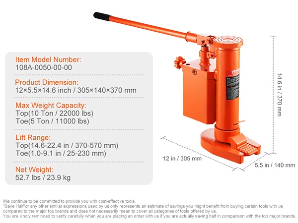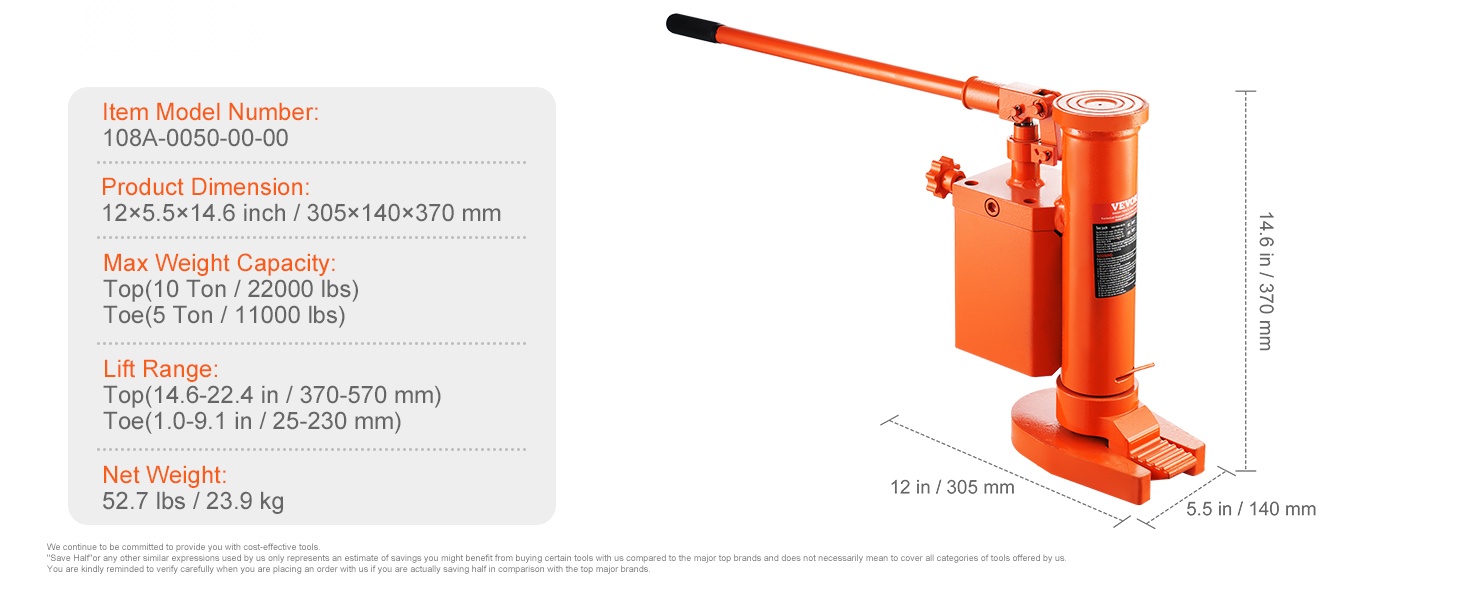 Tämä teollisuuslaatuinen hydraulinen kynsitunkki helpottaa ajoneuvojen ja koneiden nostoa ja huoltoa. Soveltuu esimerkiksi autokorjauksiin, laitteiden siirtoon, rakennustyömaille ja valimotyöhön.