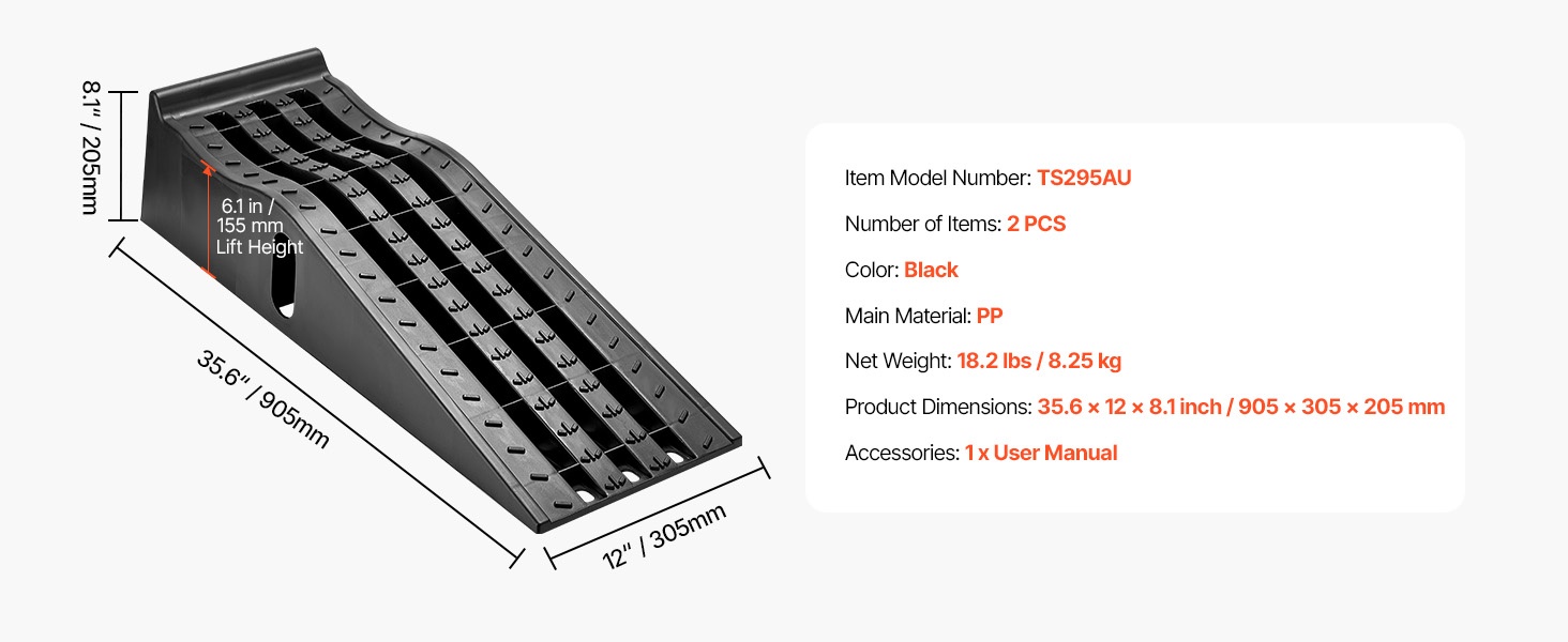 - Korkea kantavuus: jokainen ramppi tukee enintään 5T / 11000 lbs