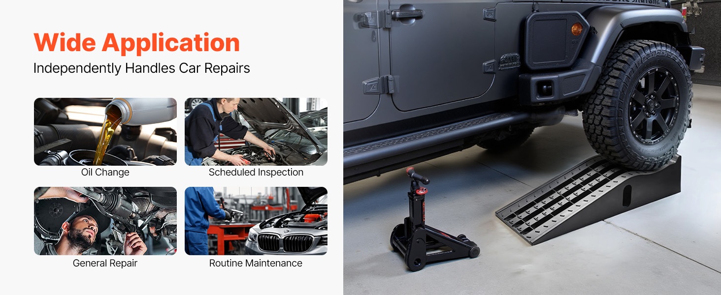 Ramppien runko on valmistettu paksusta hiiliteräksestä ja liitokset on hitsattu tarkasti. Jokainen tunkki tukee jopa 11000 lbs (5T), mikä tarjoaa luotettavan tuen erilaisille ajoneuvoille huoltotöiden aikana.