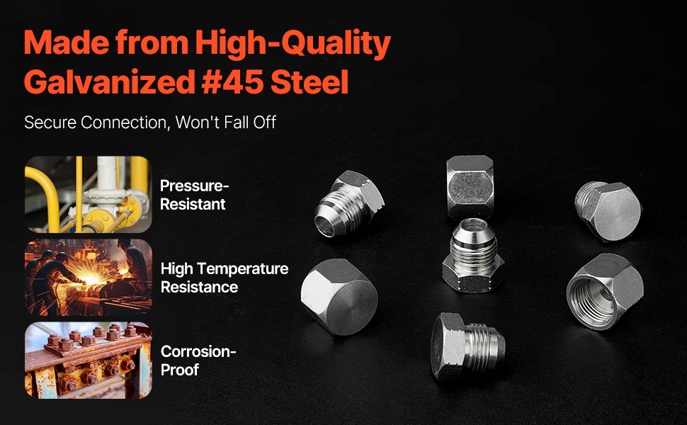 Hydraulitulpat ja -suojamuhvit tarjoavat korkean vetolujuuden ja luotettavan tiivistyksen. Sinkitty pintakäsittely parantaa korroosionkestävyyttä, mikä tekee sarjasta käyttövarman vaativissa, korkean paineen ja lämpötilan hydraulisissa kohteissa.