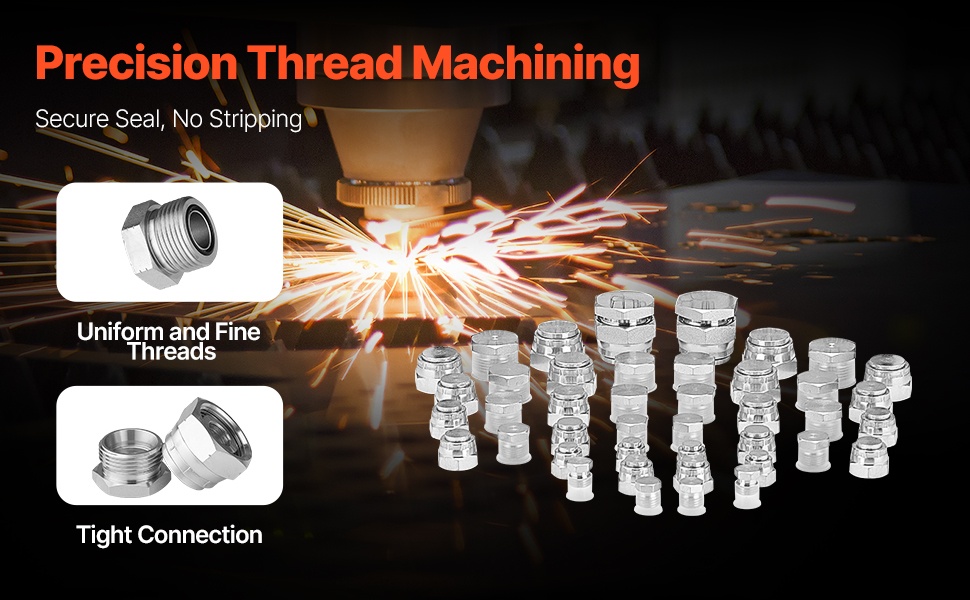 Osat on valmistettu tarkoin toleranssein hienokierteillä. Tasaiset ja pehmeästi kiertyvät kierteet varmistavat pitävän ja liukumattoman liitoksen, mikä ehkäisee tehokkaasti vuotoja ja parantaa hydrauliliitosten turvallisuutta.