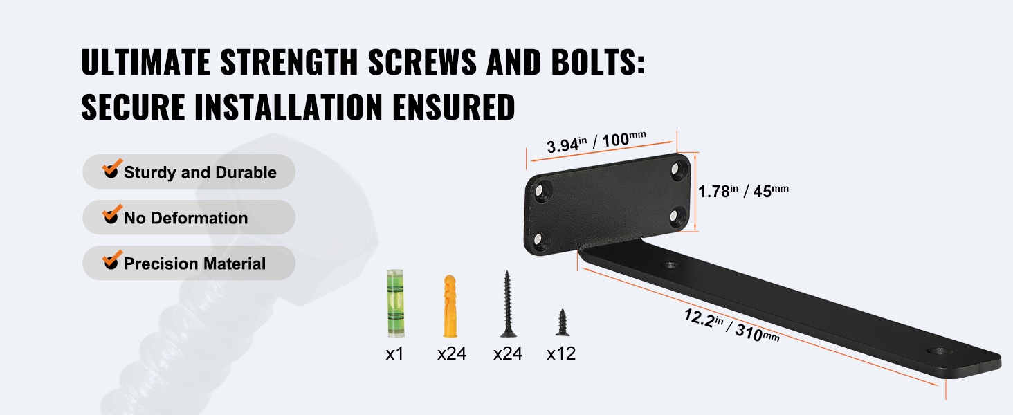 Mukana toimitettavat, eri seinätyypeille sopivat lujat ruuvit ja pultit lisäävät rakenteen vakautta ja varmistavat turvallisen kuormankeston.