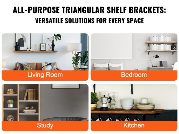 Kolmiomaiset hyllynkannattimet tukevat ja vakauttavat hyllylevyjä, jolloin saat helposti lisää säilytystilaa ja tilaa tavaroille. Ne sopivat hyvin esimerkiksi kirjoille, koriste-esineille, keittiötarvikkeille tai kylpyhuonetarvikkeille.