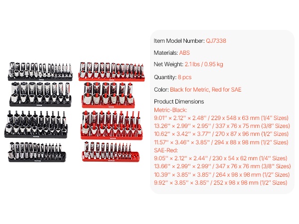 - Selkeät merkinnät metrisiin ja tuumakokoihin (Metric & SAE)