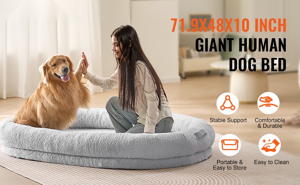 Tilava, soikean muotoinen ihmisen koiransänky tarjoaa mukavan lepopaikan sekä aikuiselle että lemmikille. Täysin ympäröivä reuna luo suojaisan pesämäisen tunteen, jossa on helppo rentoutua ja viettää yhteistä aikaa koiran kanssa.