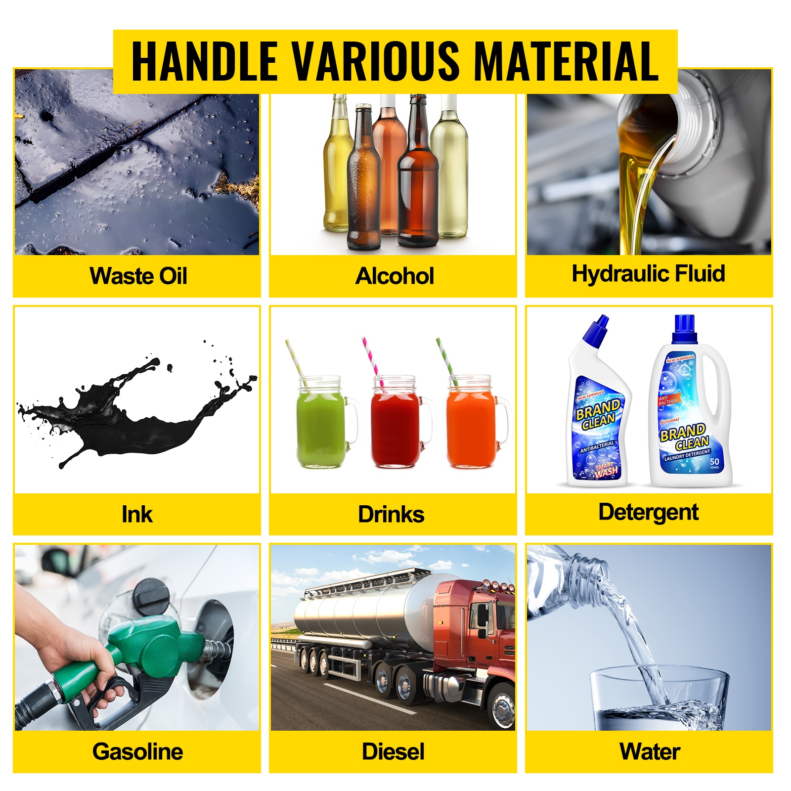 Pumppu soveltuu monenlaisten viskoosien ja syttyvien nesteiden siirtämiseen, kuten jäteöljy, alkoholi, hydraulineste, bensiini, diesel, pesuaineet ja juomavesi.