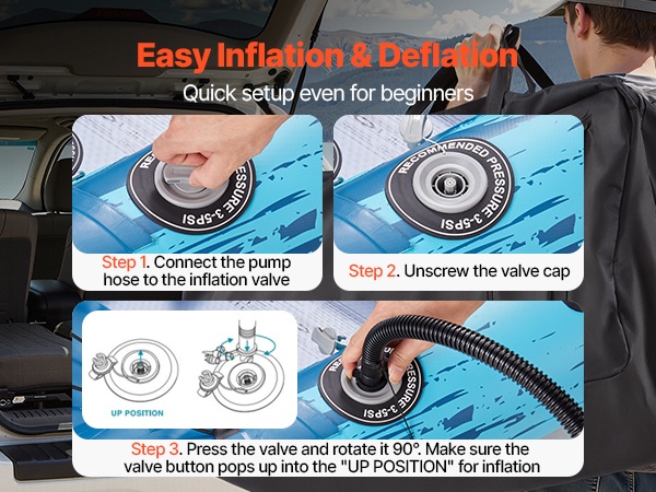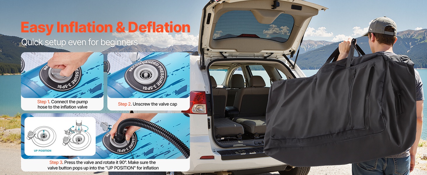 Kajakissa on 3 korkeapaineventtiiliä ja kaksitoiminen käsipumppu nopeaa täyttöä ja tyhjennystä varten. Mukana tuleva säilytyspussi helpottaa kuljettamista ja kompaktia säilytystä käytön jälkeen.