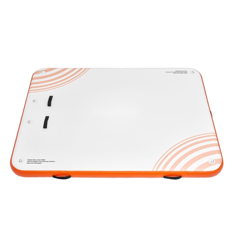 Ilmatäytteinen kelluva laituri (noin 8 x 6 jalkaa / 2.43 x 1.82 m) luo oman pienen saaren veden päälle. Liukumaton pinta parantaa turvallisuutta, ja tukeva rakenne tekee alustasta miellyttävän paikan istua, maata tai leikkiä vedessä ystävien ja perheen kanssa.