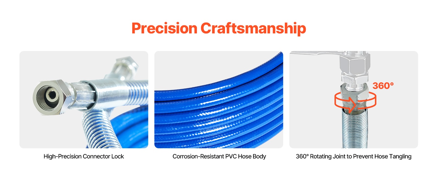Tämä ilmaton maalausletku soveltuu monenlaisiin ruiskumaalaustöihin kotona, työmaalla ja teollisissa kohteissa. Monikerroksinen, teräspunoksella vahvistettu rakenne yhdistää korkean paineenkeston, hyvän taipuisuuden ja pitkän käyttöiän.
