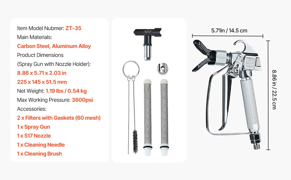 - Korkea työpaine jopa 3600PSI tehokkaaseen ja peittävään ruiskutukseen