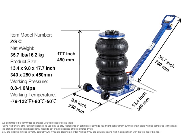 Pneumaattinen ilmatunkki viiden tonnin kuusiosainen teräsputki säädettävä kahva paksu kumityyny
