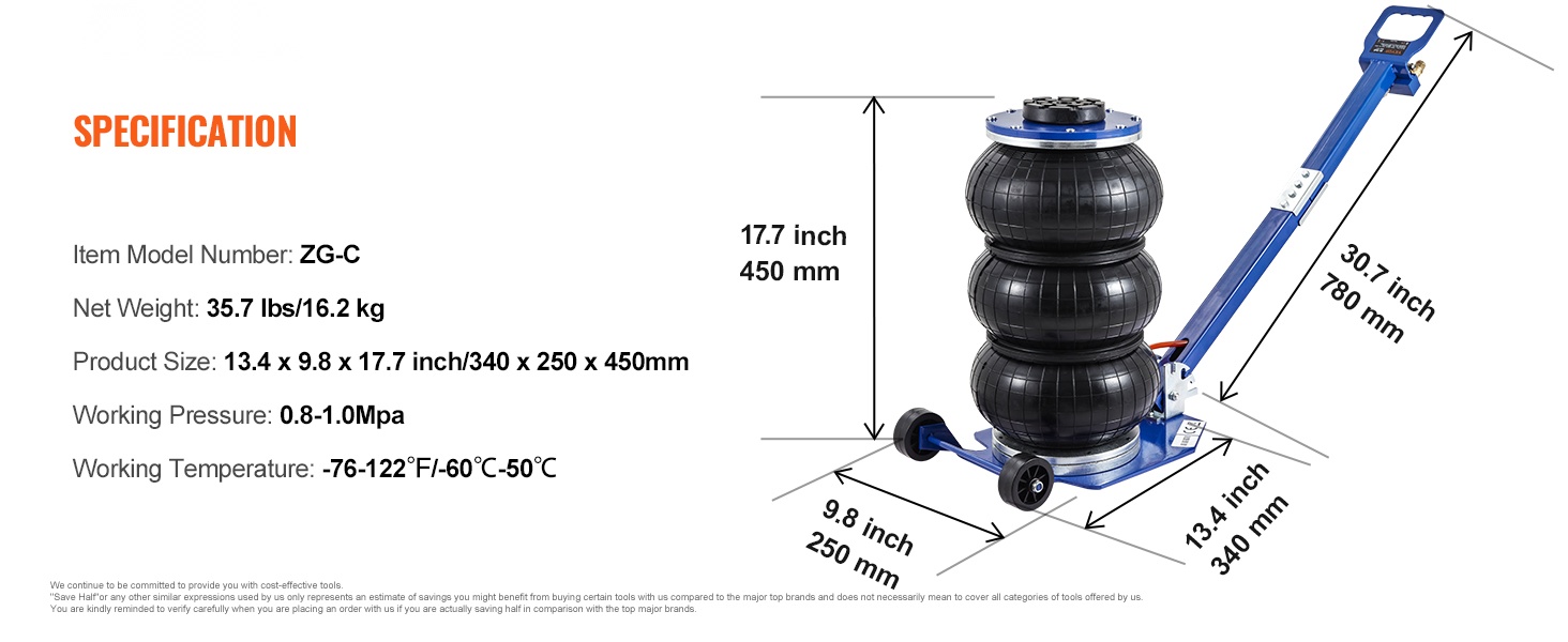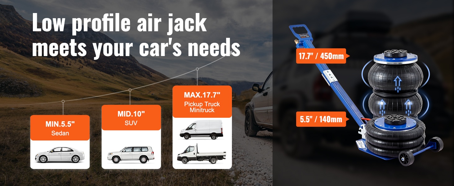 - Nostokorkeus ilman kuormaa: 5.5–17.7 tuumaa / 140 mm–450 mm