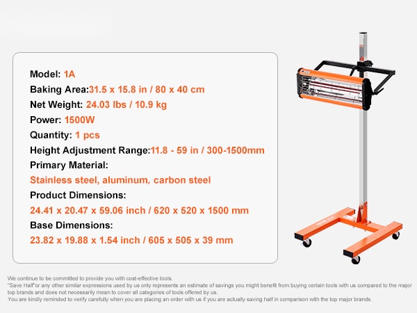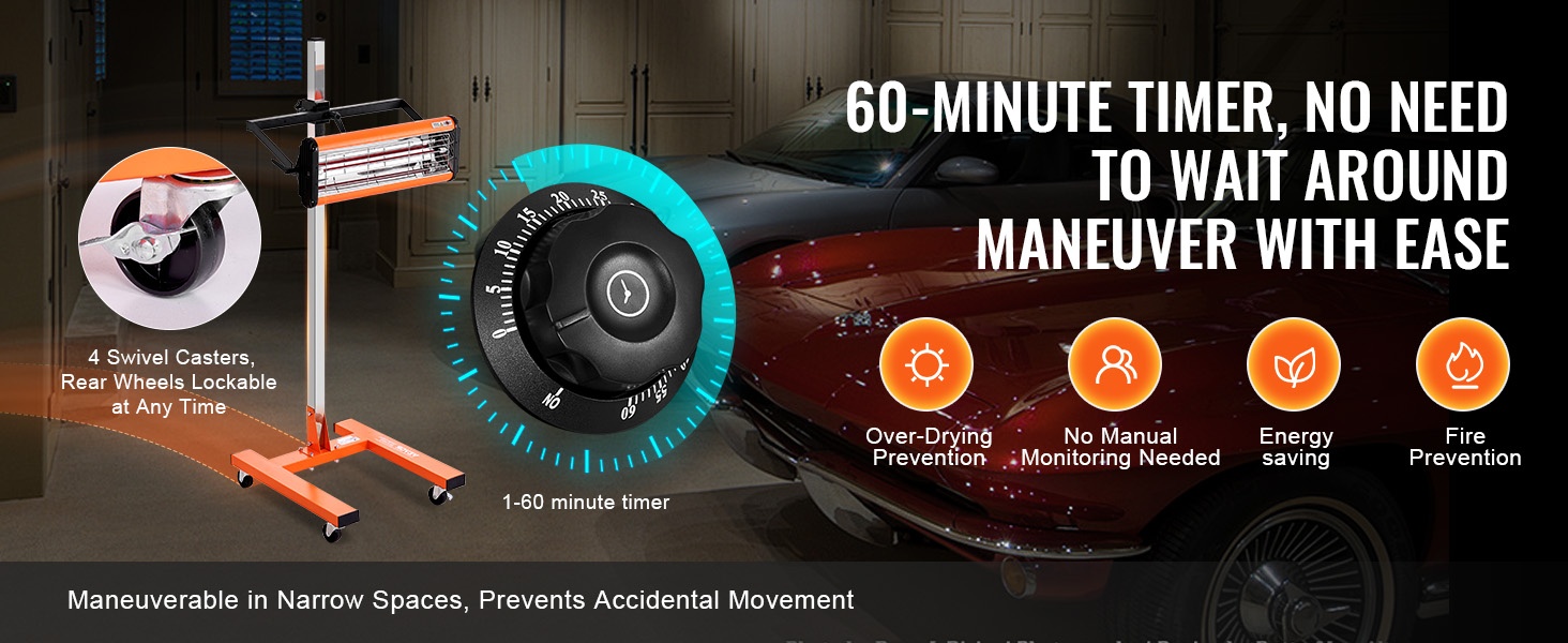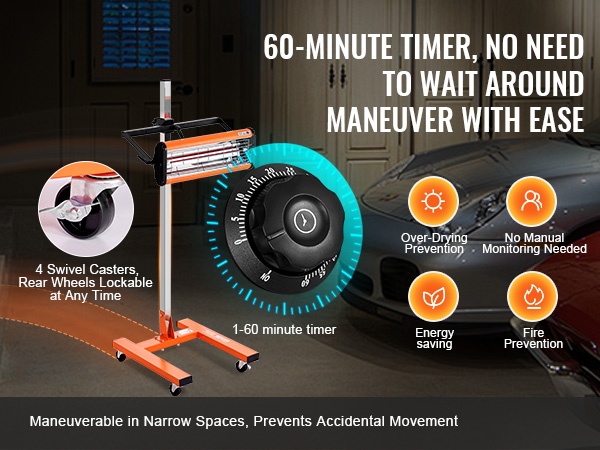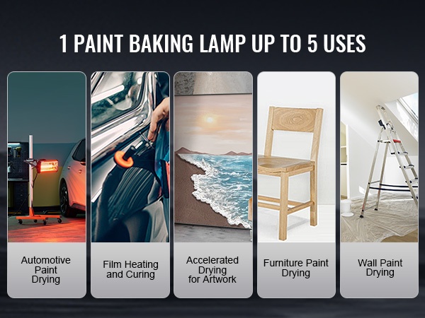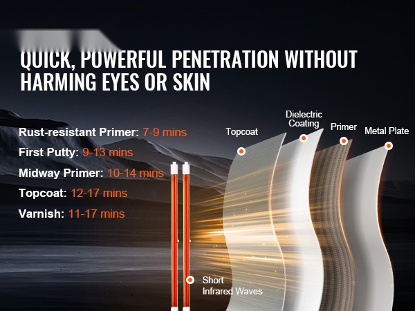 - Tehokas 1000W infrapunasäteily nopeaan maalin ja lakan kuivaukseen