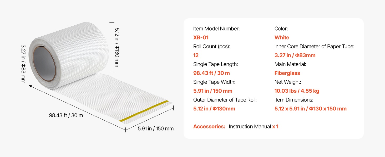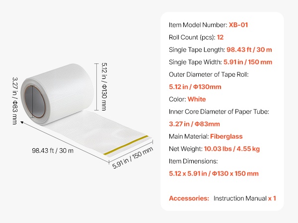 - Yksittäisen teipin leveys: 5.91 tuumaa / 150 mm