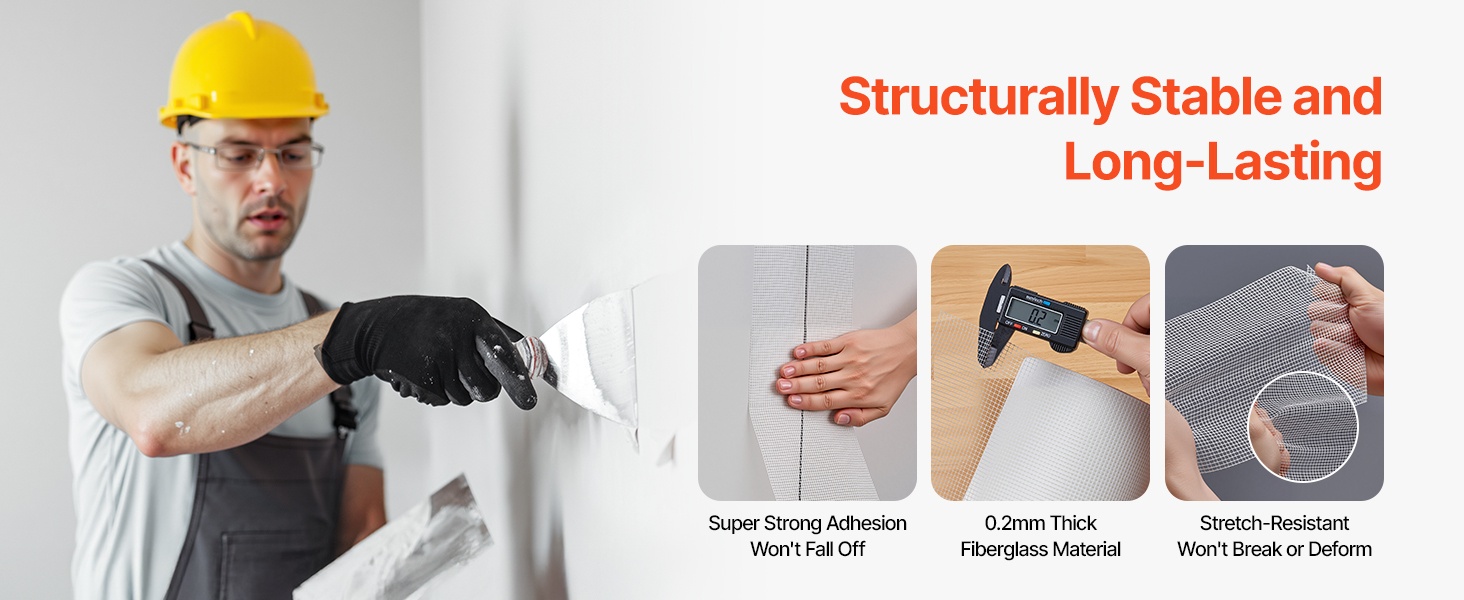 Tämä kipsilevyverkko teippi helpottaa suurten halkeamien ja vaurioituneiden kohtien korjaamista seinissä ja katoissa. Laadukkaasta lasikuidusta valmistettu teippi kestää hyvin vetoa ja auttaa ehkäisemään seinien uudelleen halkeilua. Vahva itsekiinnittyvä liimapinta pitää teipin tiukasti paikallaan ilman, että se irtoaa helposti.