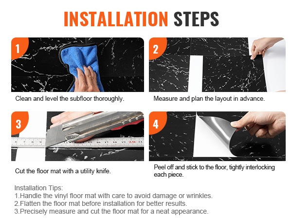 Laatat soveltuvat lähes kaikille tasaisille alustoille, kuten vanhan lattian päälle, ja helpottavat sisustuksen päivitystä ilman suurta remonttia. Hyvä valinta esimerkiksi keittiön, ruokailuhuoneen, makuuhuoneiden, eteisen, työhuoneen ja kylpyhuoneen lattioihin, kun halutaan siisti ja helposti puhdistettava pinta.