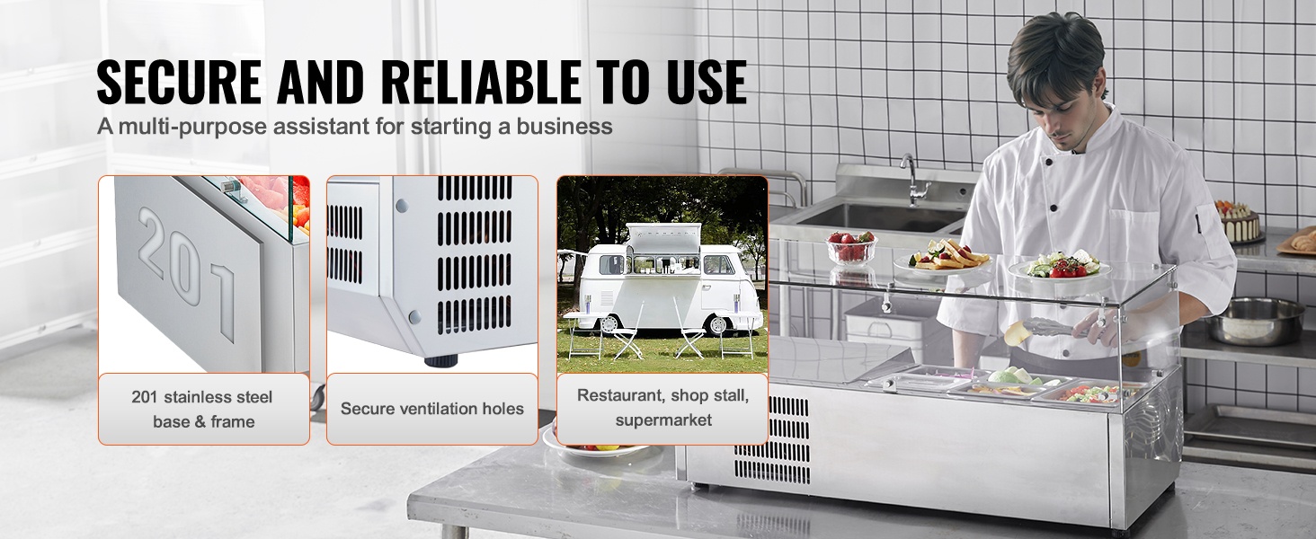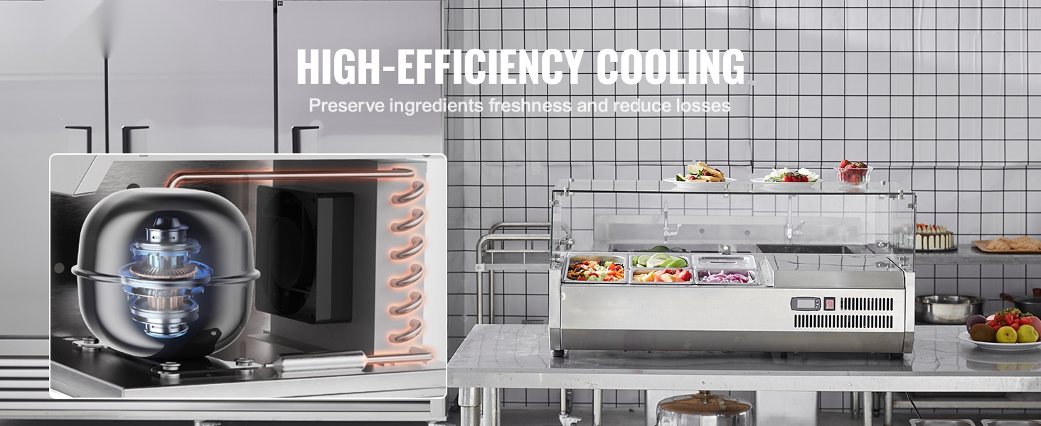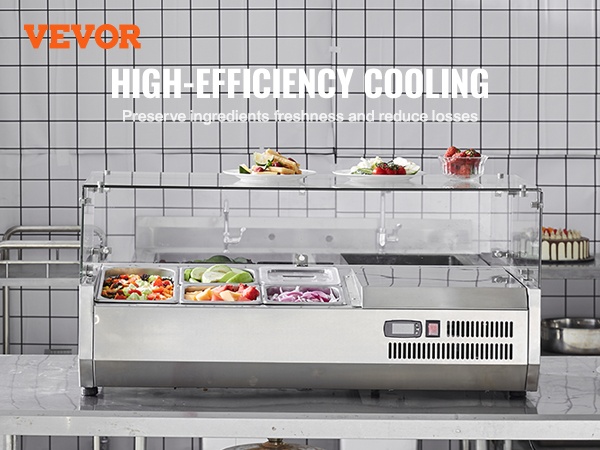 Tämä työtasolle sijoitettava jäähdytettävä mauste- ja raaka-aineasema helpottaa tuoreiden ainesosien säilytystä, esillepanoa ja puhdistusta ammattikeittiössä. Se on suunniteltu esimerkiksi voileipien, salaattien, pizzan täytteiden ja muiden kylmäsäilytystä vaativien ainesosien järjestelmälliseen säilyttämiseen.