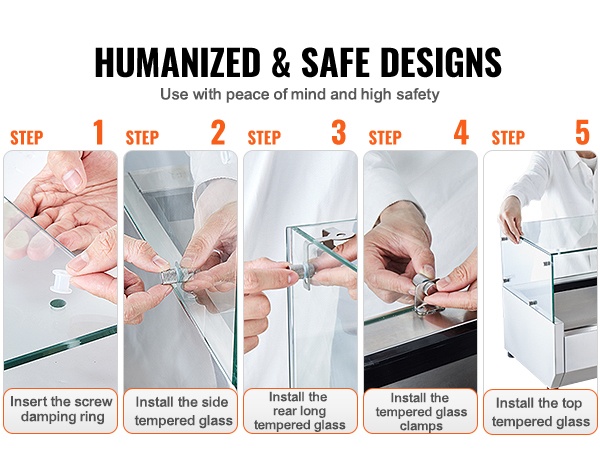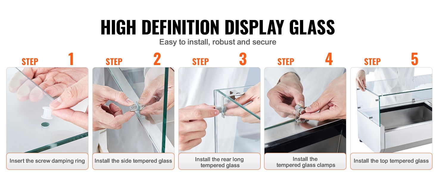 Karkaistu lasisuoja yhdistää lämpötilan hallinnan ja selkeän esillepanon. Kestävä lasi suojaa ainesosia ulkoisilta roiskeilta ja tarjoaa samalla hyvän näkyvyyden sisältöön. Asennus on helppo, ja tarvittavat kiinnitystarvikkeet sisältyvät toimitukseen.