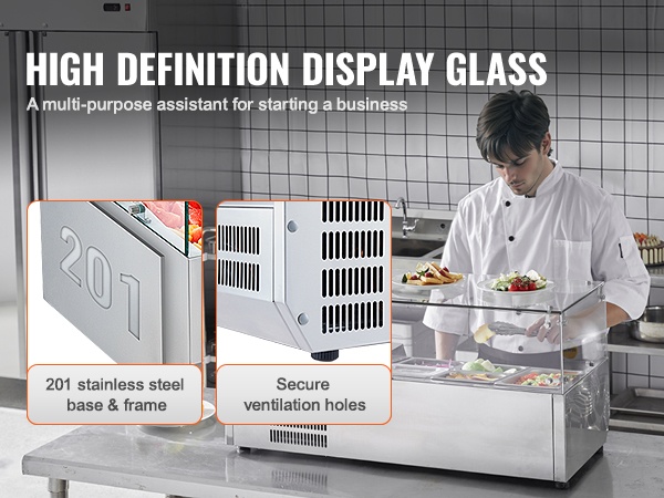Pöytämallinen jäähdytetty lisäkeasema 304-ruostumaton teräs 1/3- ja 1/6-astiat karkaistu lasisuoja