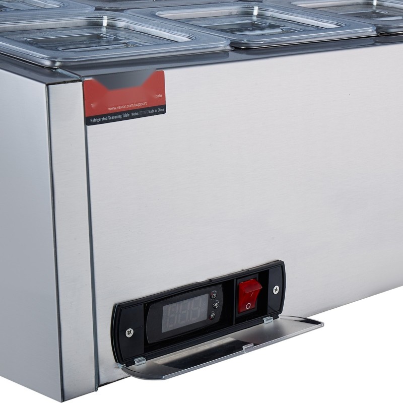 Jäähdytetty maustepiste työtasolle 8 kpl 1/6-astioita 304-ruostumatonta terästä PC-kansilla